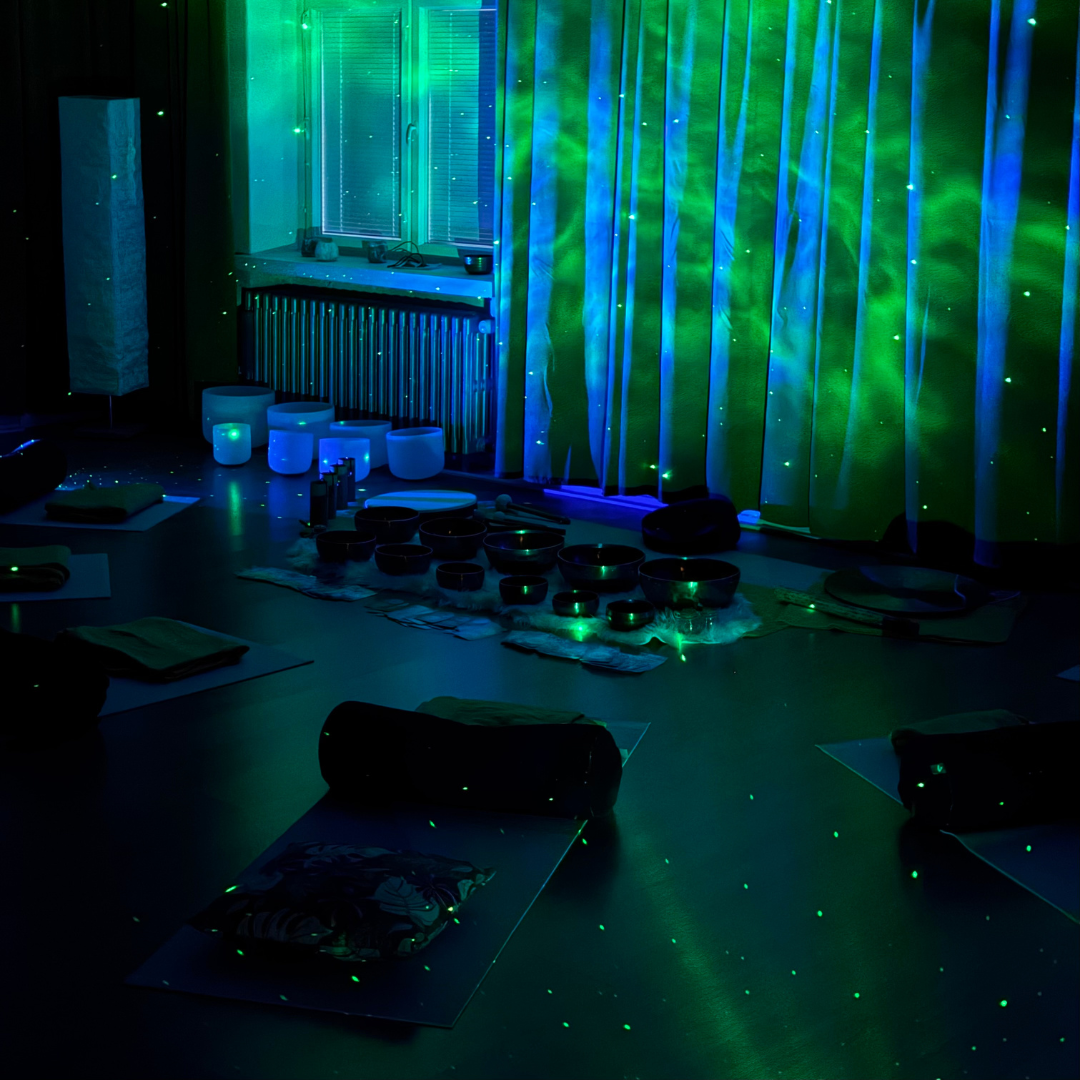 Tässä uudenlaisessa elämyksellisessä avaruus äänimaljarentoutuksessa Rentoutumisen ullakon sali muuttuu upean tunnelmalliseksi avaruudeksi.